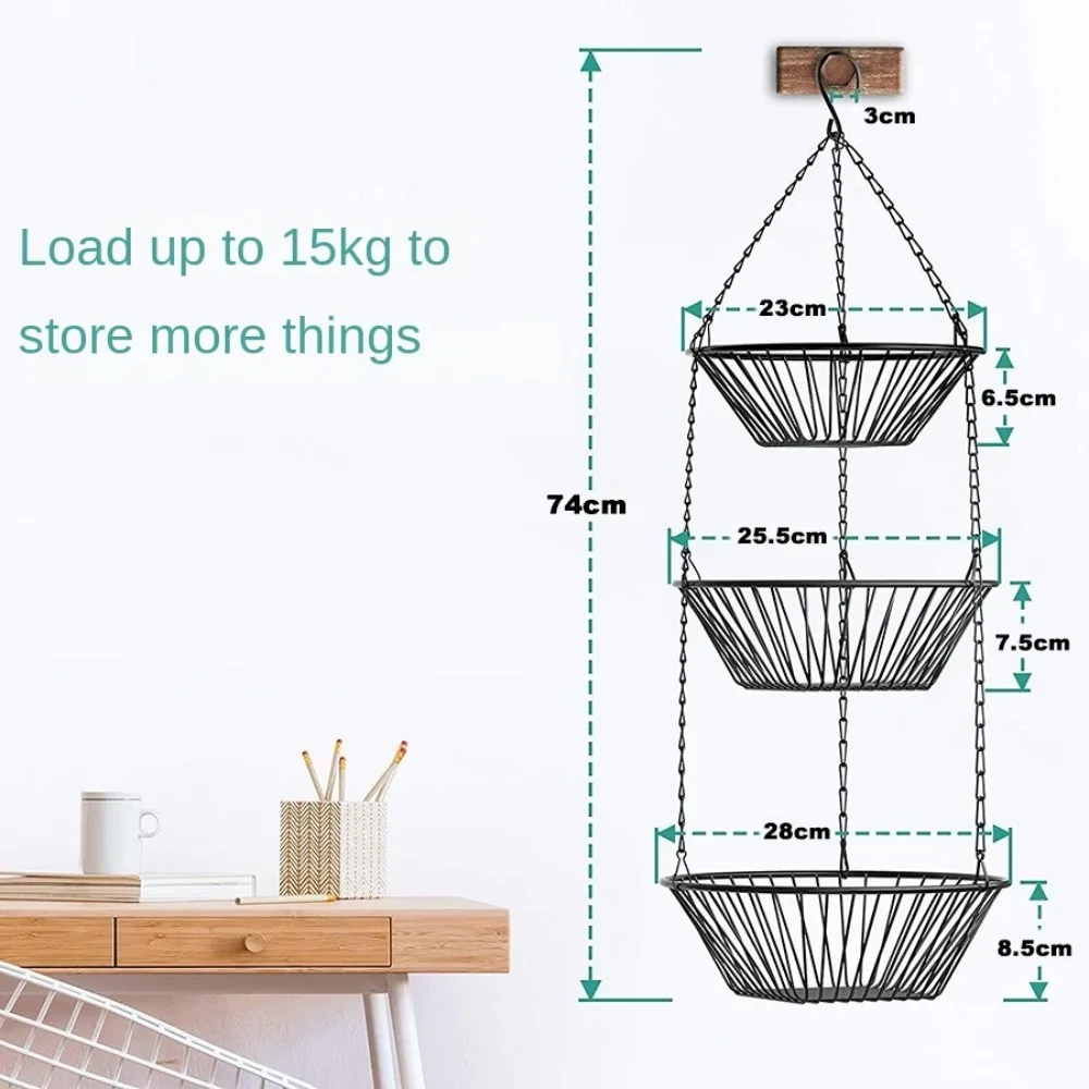 Foldable Hanging Fruit Basket Nordic Wall Hanging Snacks Storage Basket Iron Wire Three Tier Flowers Basket Storage Rack