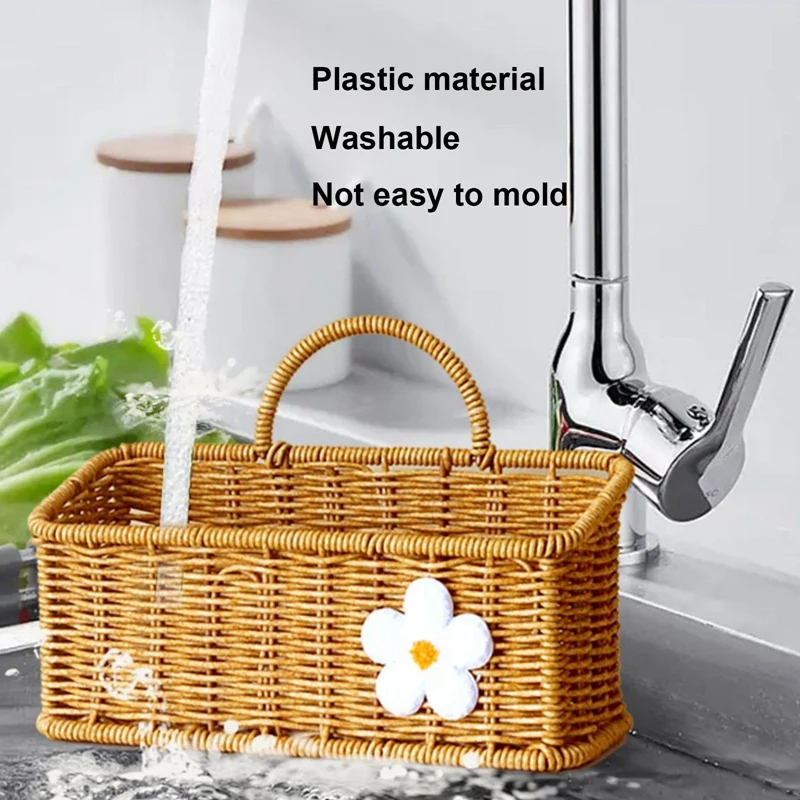Hanging Fruit Basket Imitation Rattan Wall Mount Basket With Handle Handmade Rattan Woven Organizer Flower Pot Container Basket