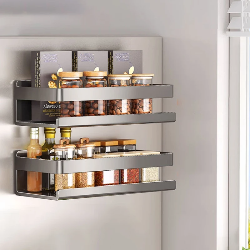 Magnetic Seasoning Spices Organizer Metal Shelves for Refrigerator Hanging Spice Rack Kitchen Storage Organization Accessories
