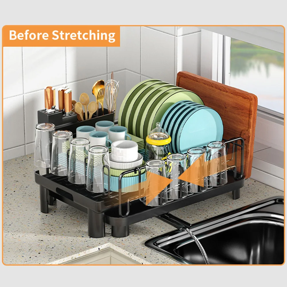 Multifunctional Dish Drying Rack Kitchen Extendable Dish Rack with Drainboard Dish Drainer Storage Organizer Cutlery Cup Holders