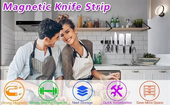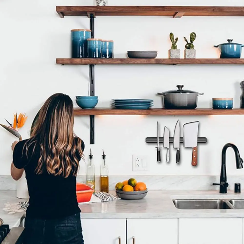 • Multipurpose Functionality :This magnetic knife rack strip offers multiple uses, serving as a household kitchen tool and space-saving wall-mounted magnet knife holder.