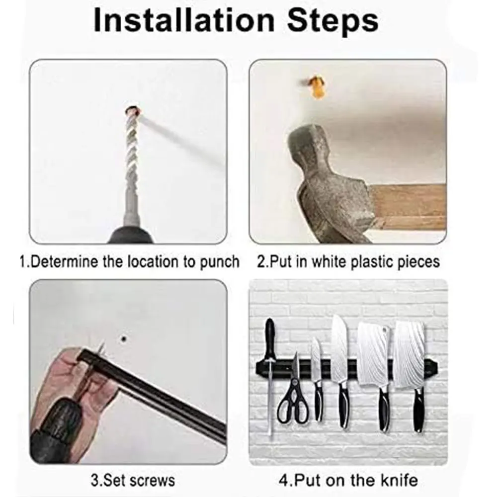• Easy Installation :With its wall-mounted design, this knife rack strip is easy to install, making it a convenient and practical addition to any kitchen.