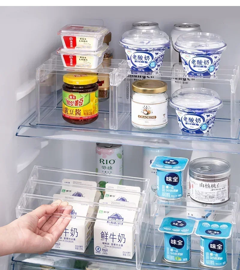 Refrigerator Organizers Storage Rack Fridge Layered Separator Shelves Transparent Desktop Stand Save Space Kitchen