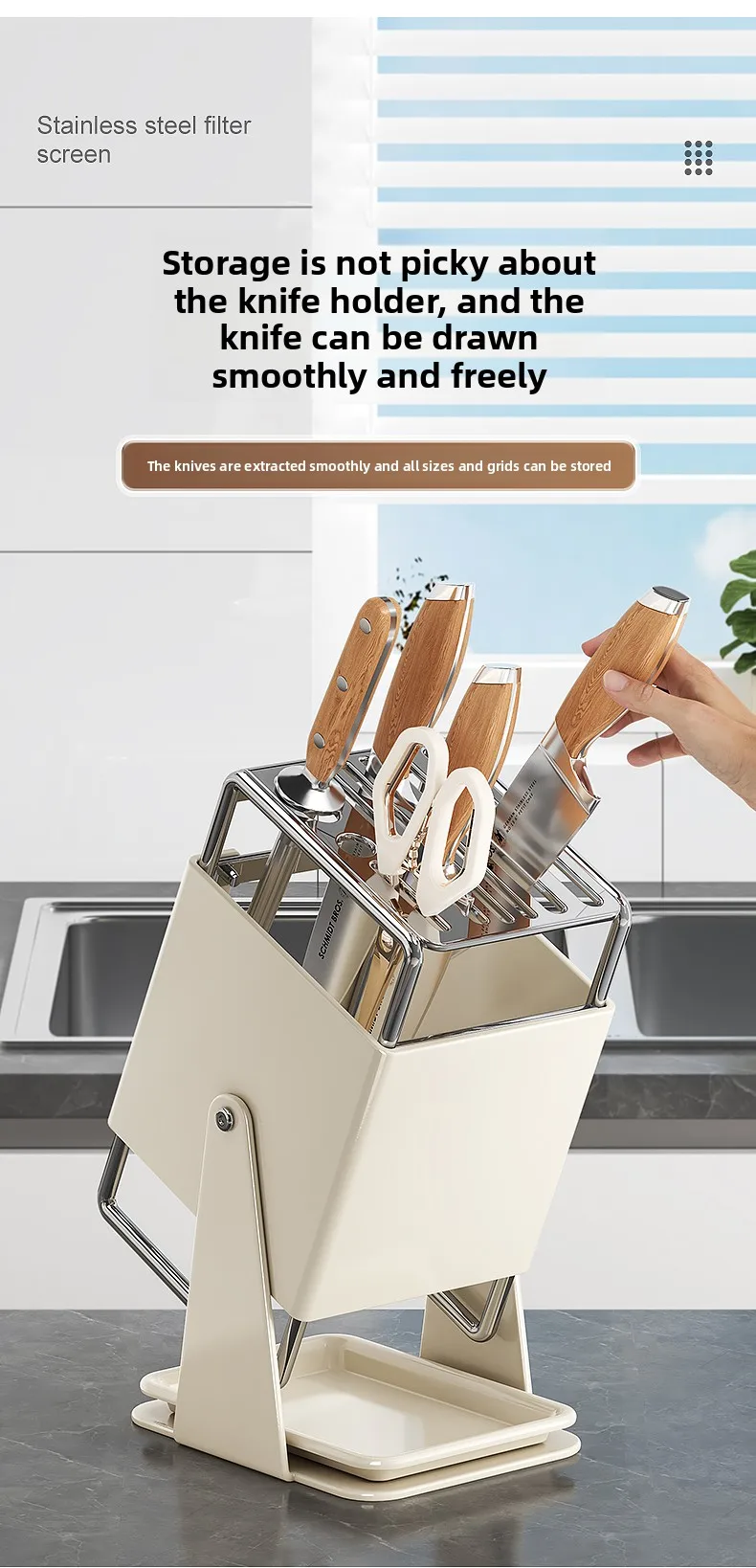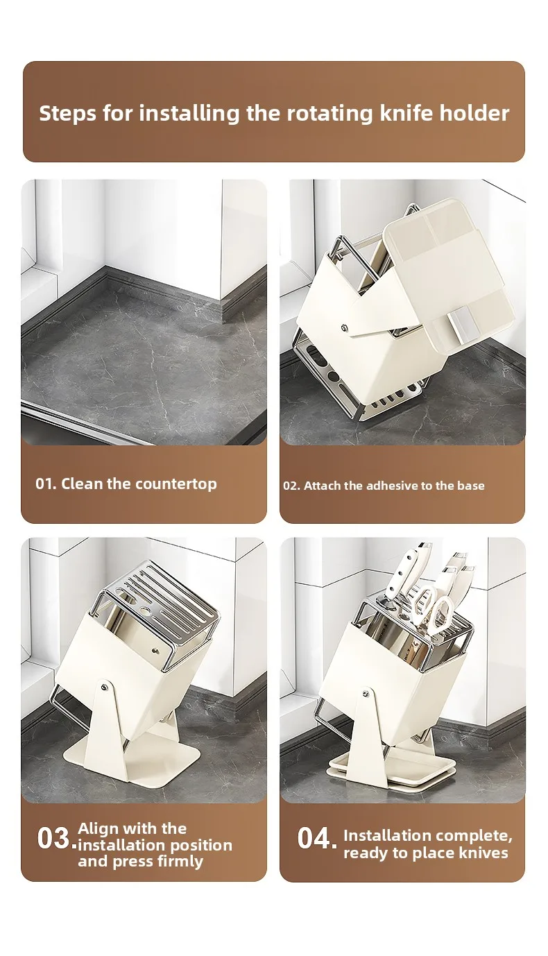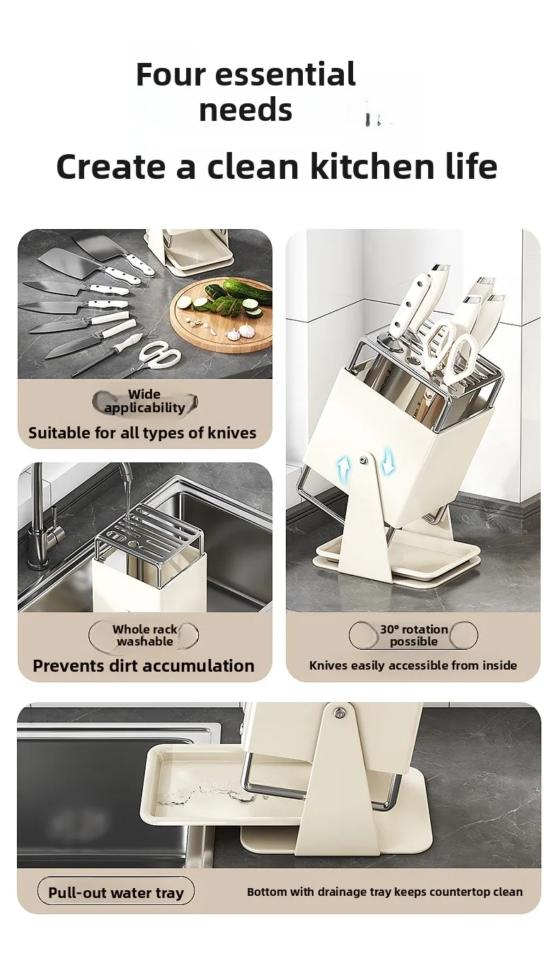 Stainl Steel Kitchen Knife Holder Rotating Blade Storage Ra High Aesthetic Multi-Function Kitchen Storage elf