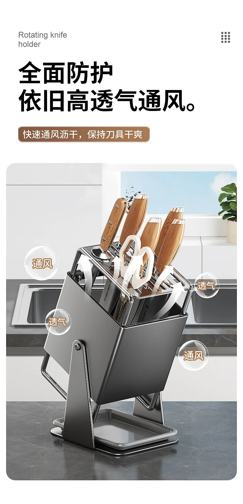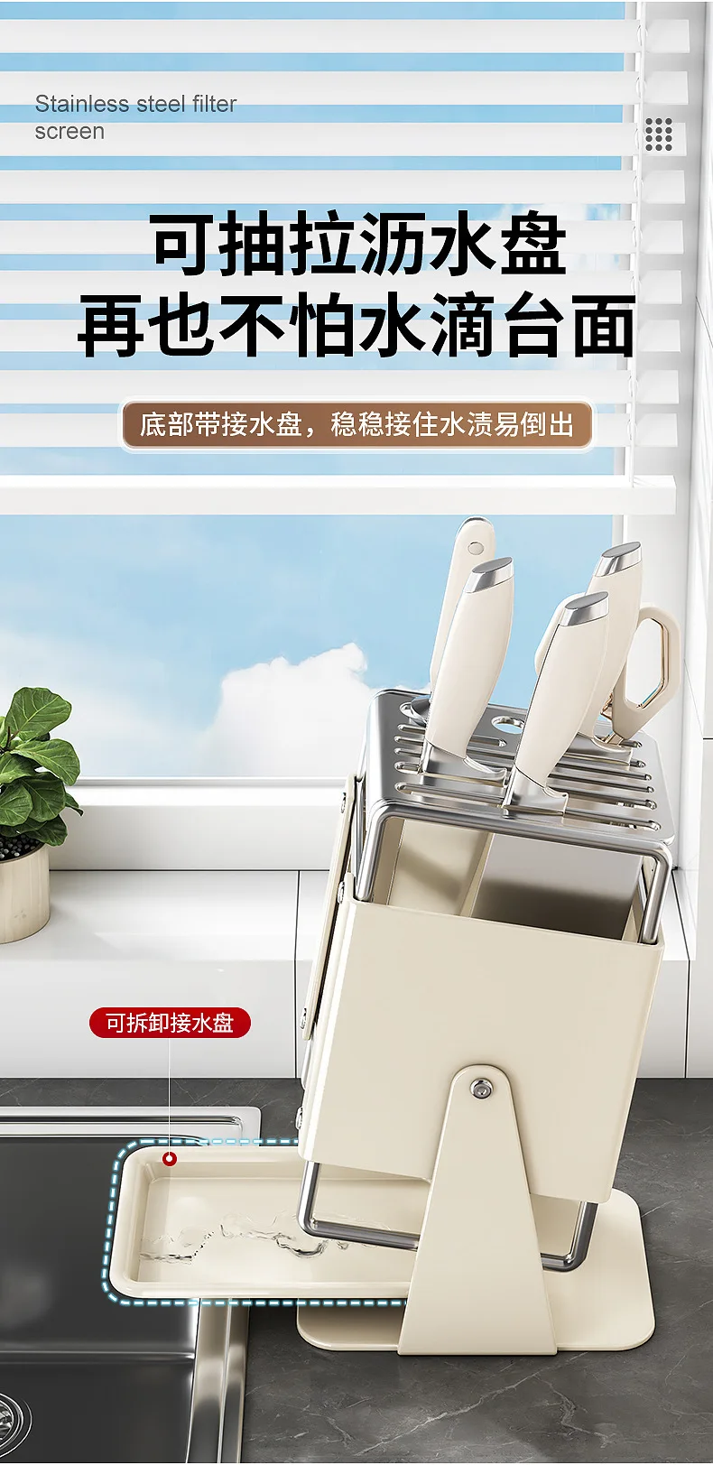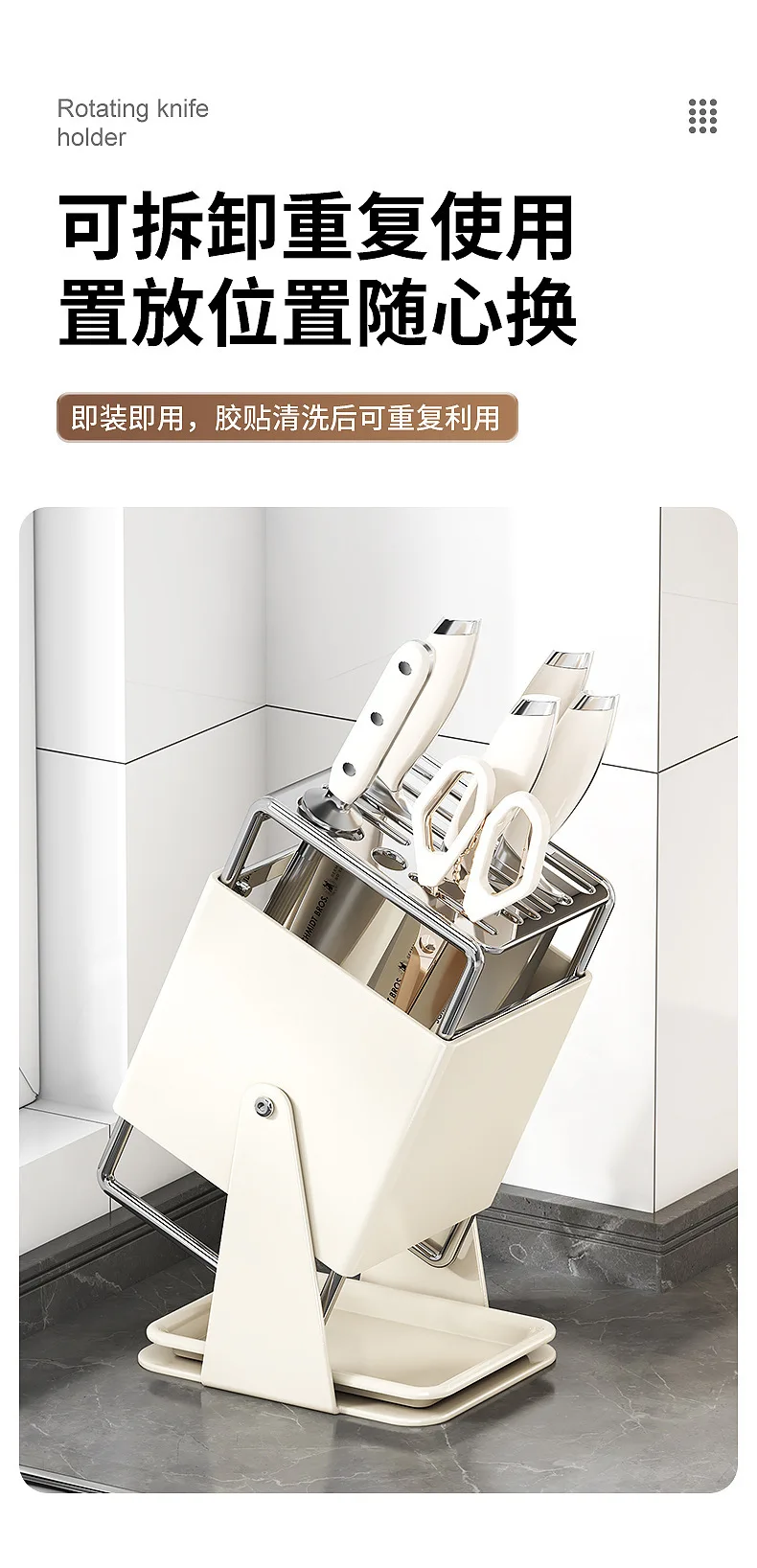 Stainless steel kitchen knife holder, rotatable tool storage rack, drainage countertop integrated tool holder