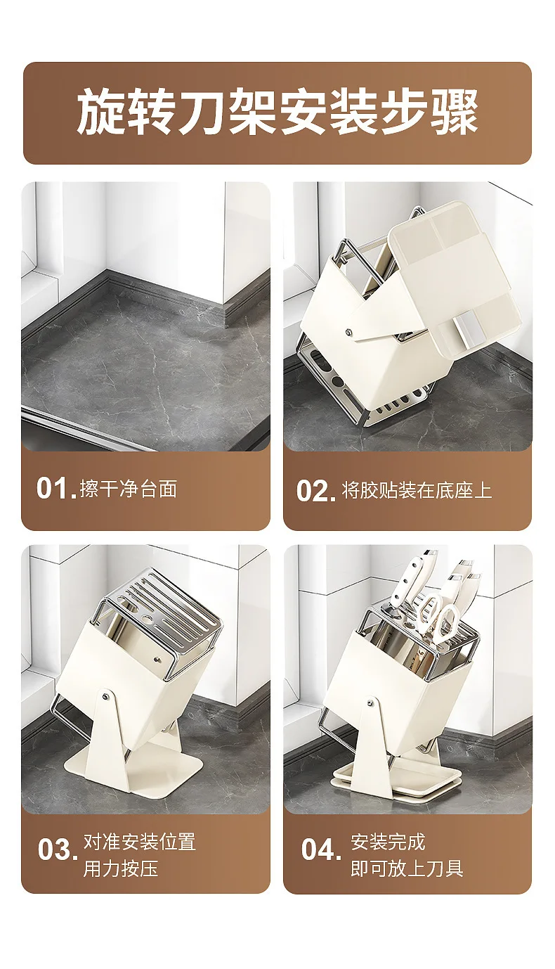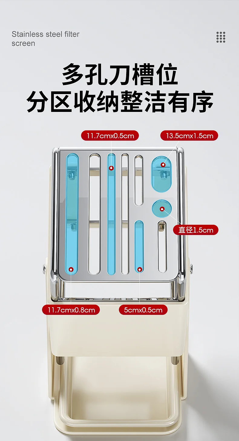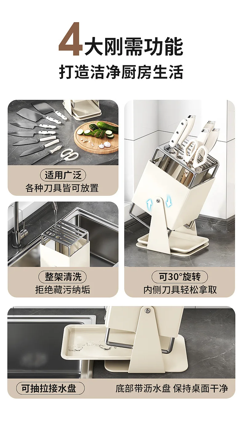 Stainless steel kitchen knife holder, rotatable tool storage rack, drainage countertop integrated tool holder
