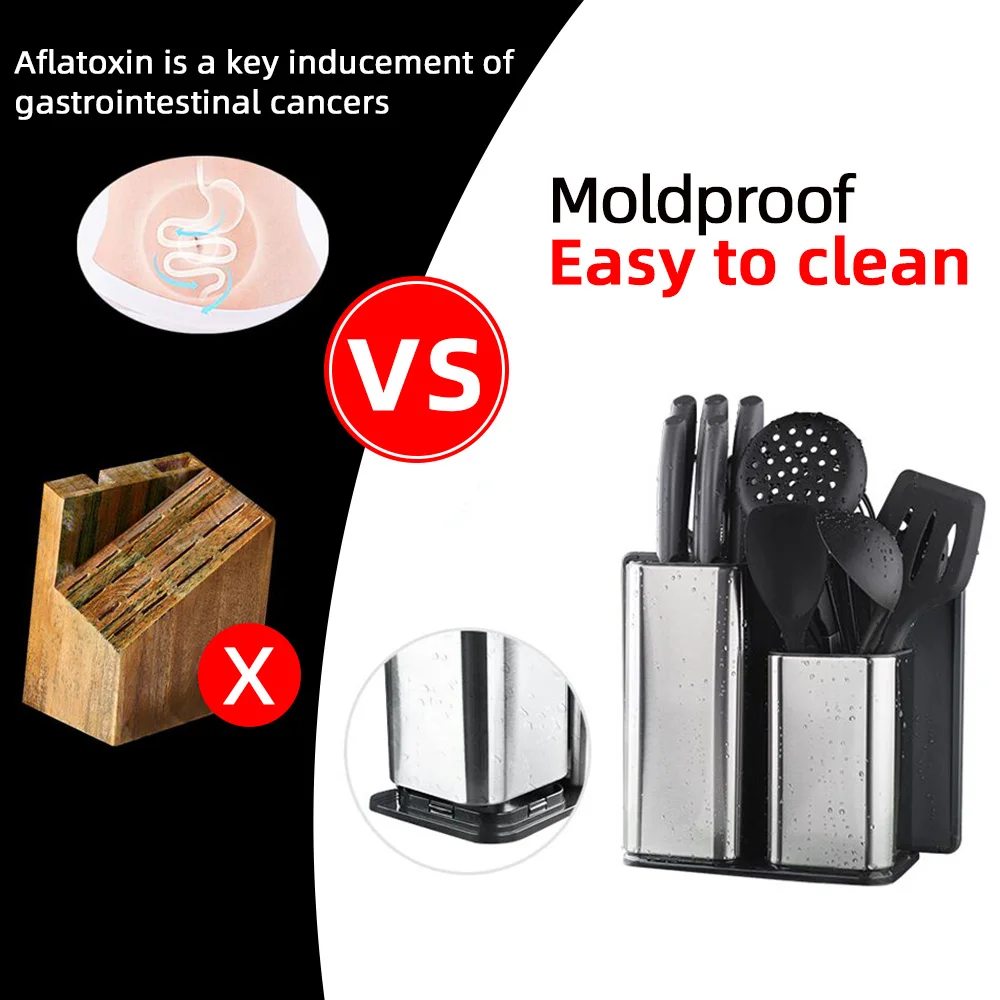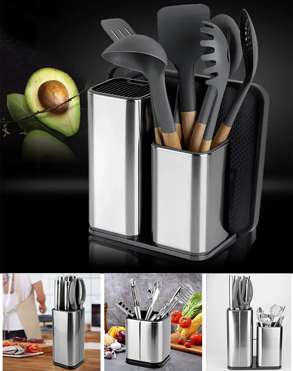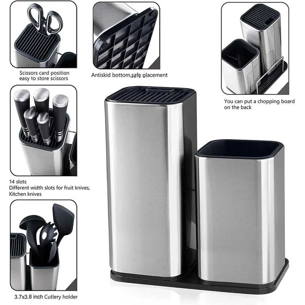 Myvit Professional Knife Holder and Utensil Stand - Stainless-Steel Modern Rectangular Design Universal Knife Block and Kitchen Utensils Organizer