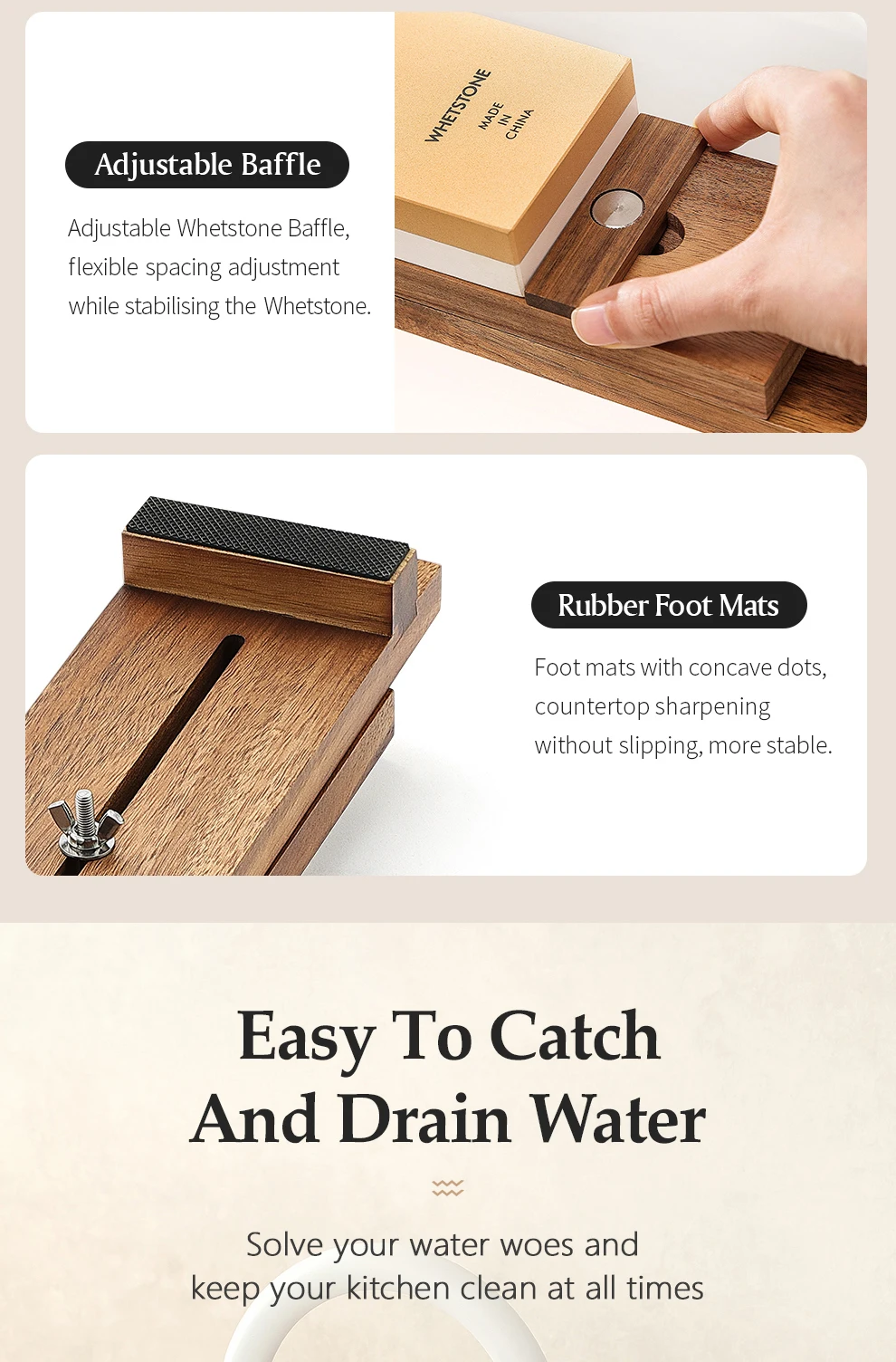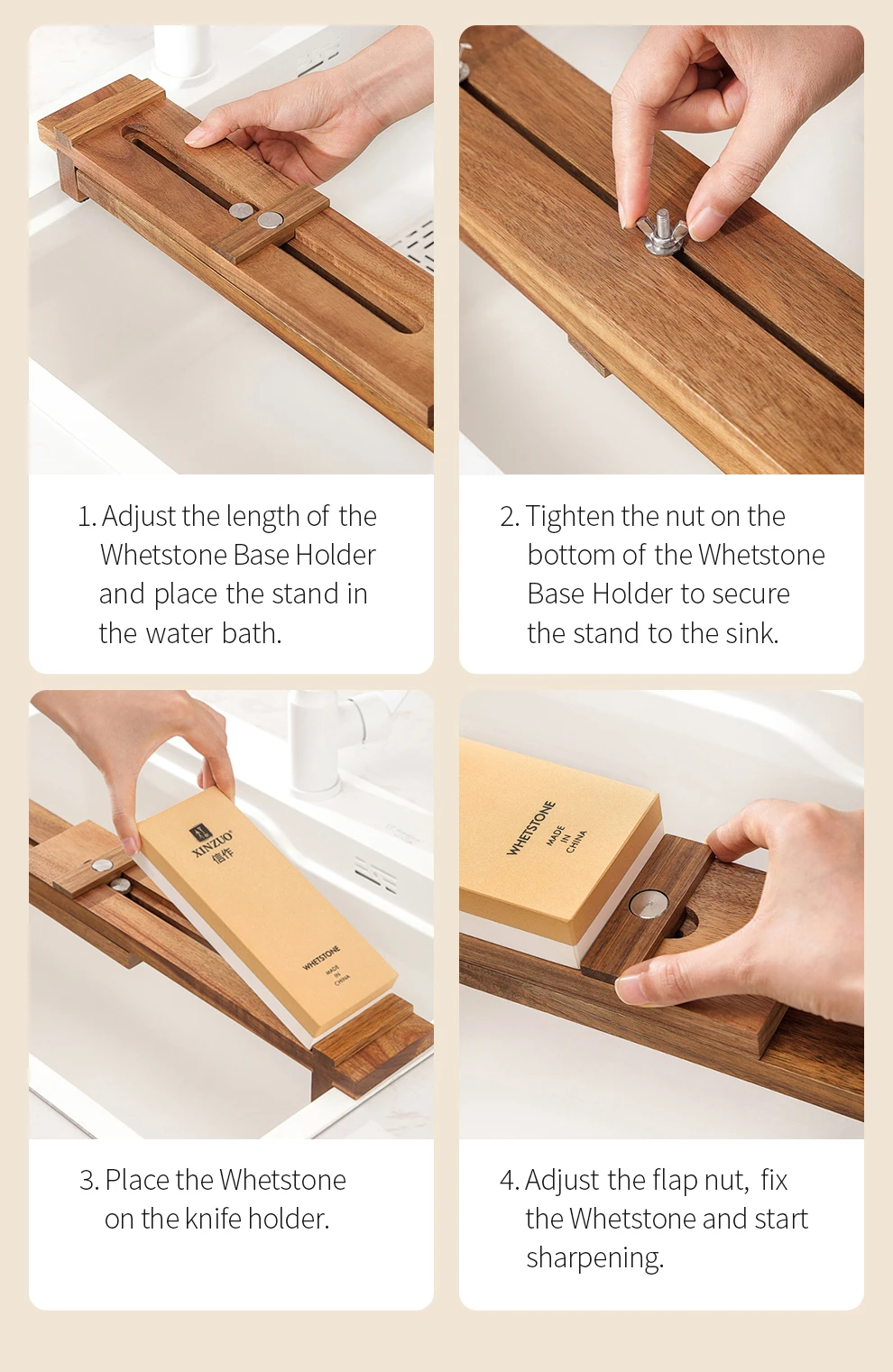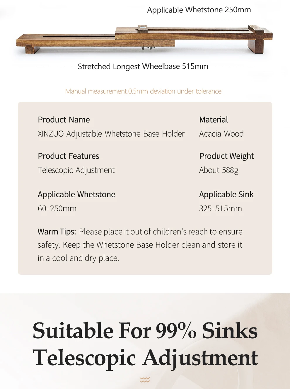 XINZUO Acacia Wood Whetstone Base Holder Adjustable Telescopic Solid Knife Sharpening Block for Kitchen Knives